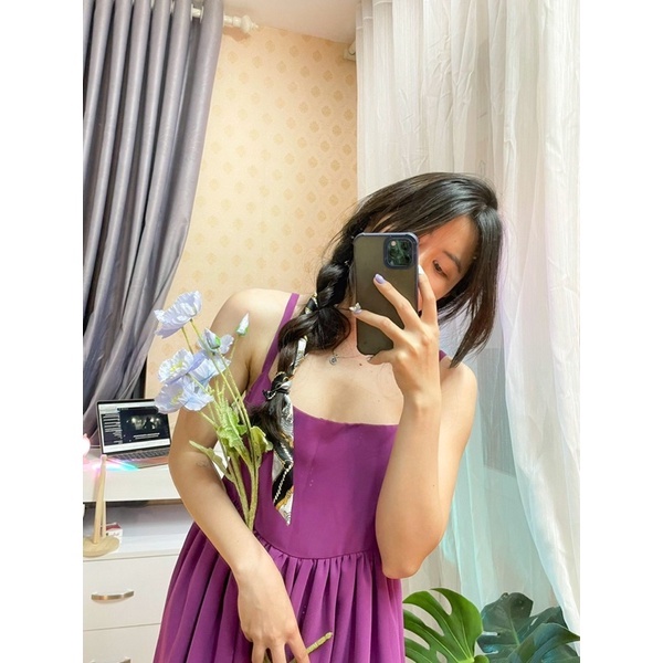 Váy maxi xanh, chất liệu voan mềm 2 lớp bồng bềnh siêu đẹp cho chị em mặc đi biển, đi chơi, đi du lịch