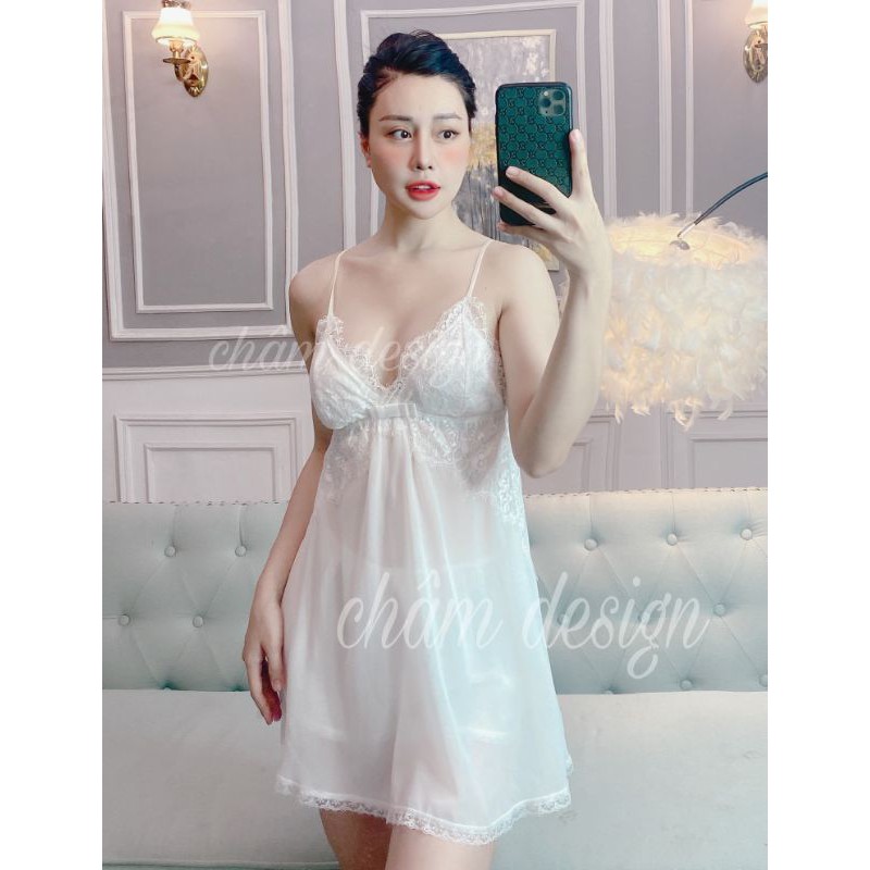 Giới thiệu váy ngủ chất chifon trắng pha ren mi trắng, hàng thiết kế độc quyền.(Mã RMT)