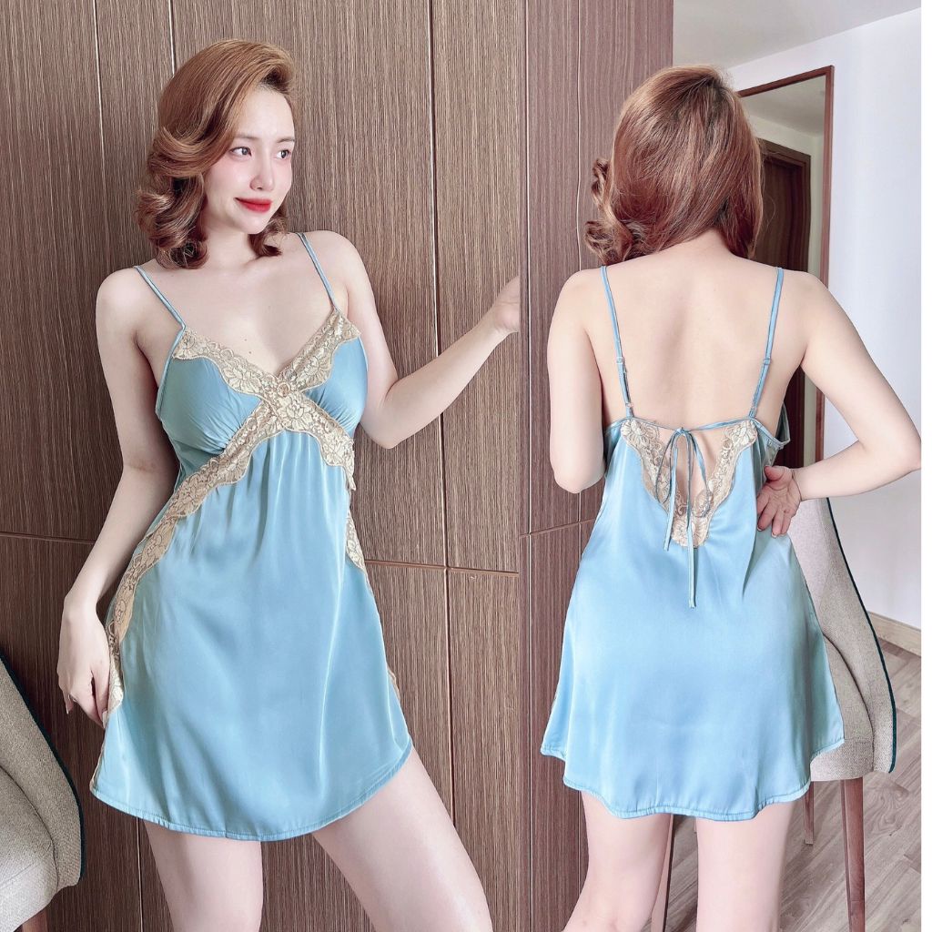 Váy ngủ sexy, Đầm ngủ sexy lụa Satin Chất Siêu Mát Dáng Siêu Xinh <58kg