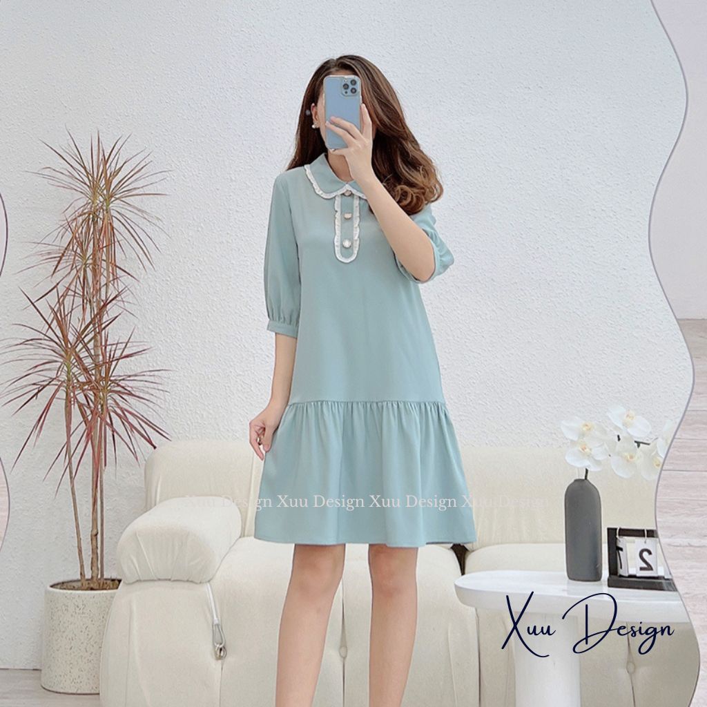 Giới thiệu Váy nữ thiết kế XUU dáng babydoll tay lỡ cổ phối viền thanh lịch vải tơ mềm mịn - V13