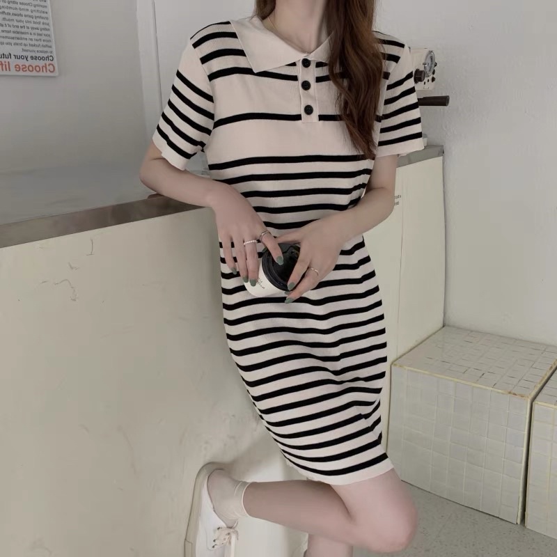 Giới thiệu Váy polo nữ dáng suông tay ngắn kiểu cổ bẻ dệt kim len tăm Váy xinh đầm đẹp hàng Quảng Châu cao cấp