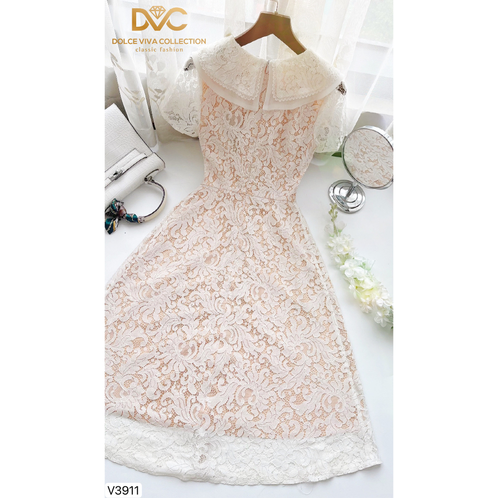 Giới thiệu VÁY REN TRẮNG DÀI NGẮN CỔ LÁ KIM V3911 - DVC