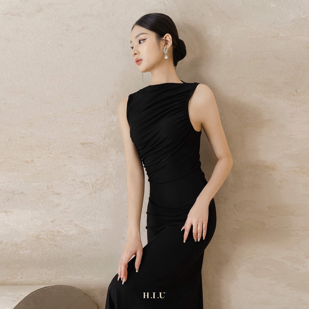 Giới thiệu Váy sát nách nữ thun tăm nhún eo Legi Dress H.I.U Fashion , đầm tiệc dáng dài midi thiết kế sang trọng HIU design