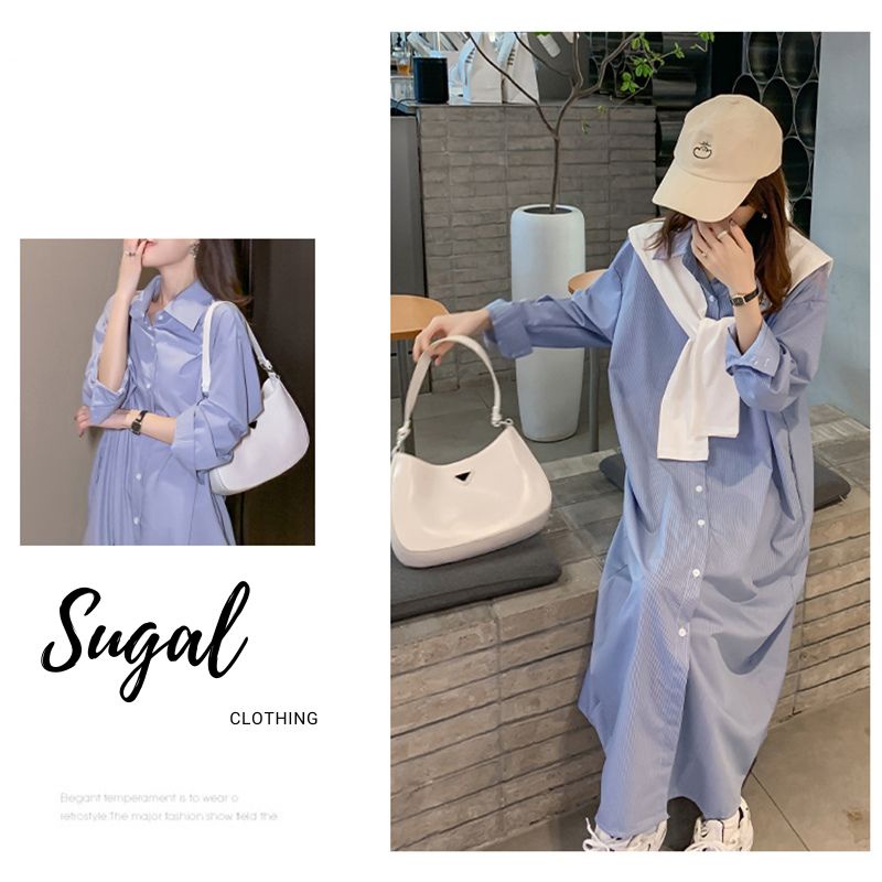 Váy Sơ Mi Dài Tay Dáng Dài Phối Khăn Choàng Phong Cách Ulzzang Thời Trang Sugal VAY NU 043V2