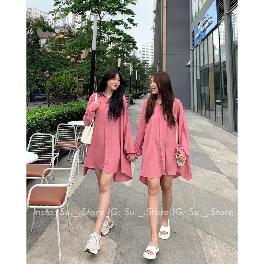 Váy sơ mi dáng rộng kẻ ô chìm V674 SUSTORE