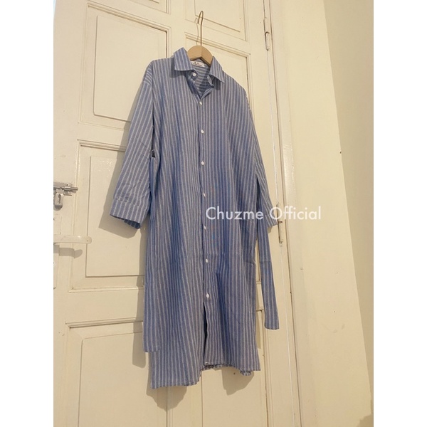 Sản phẩm: Váy Sơ Mi Kẻ Sọc Dáng Suông Kèm Đai (Ảnh thật) Chiều dài: 97cm Ngang váy: 55cm Vai áo: 47cm Dài tay: 26cm Freesize form suông rộng tối đa 62kg