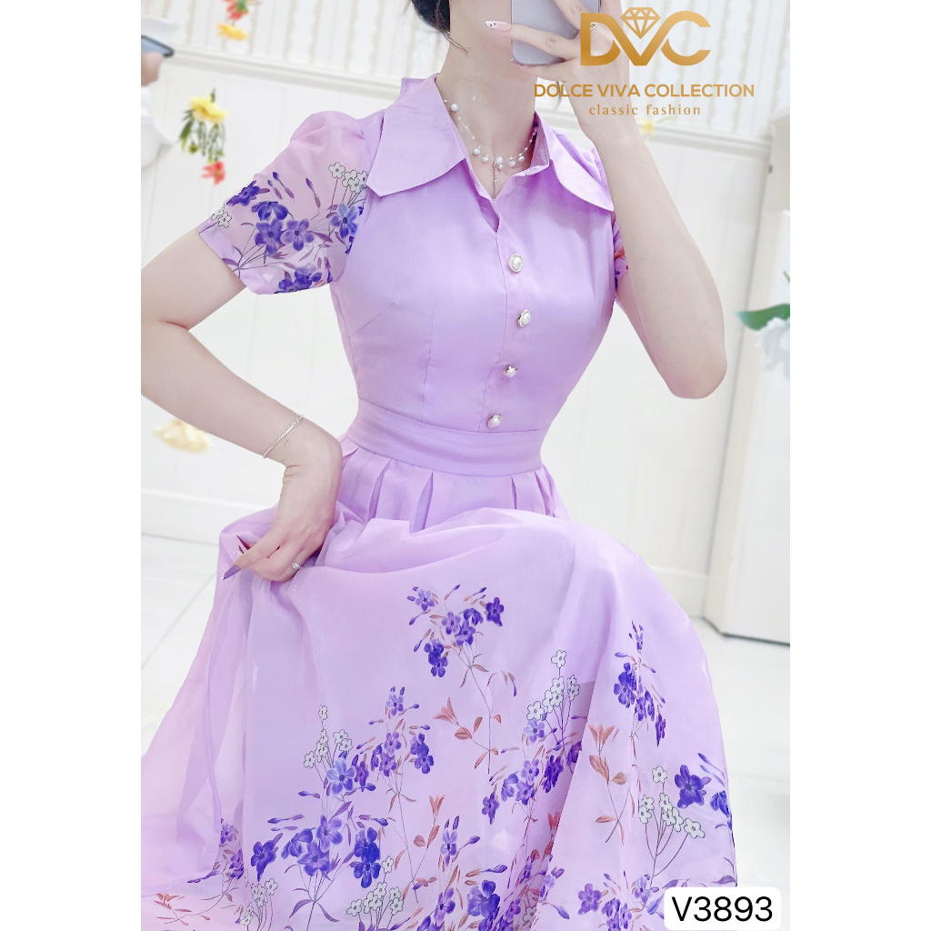 Giới thiệu VÁY SƠ MI TÍM HỌA TIẾT HOA NHÍ DÁNG XẾP LY MẶC ĐI CHƠI V3893 - DVC