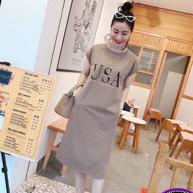 váy suông in chữ u.s.a xẻ tà chât cottong hottendGiá XMT