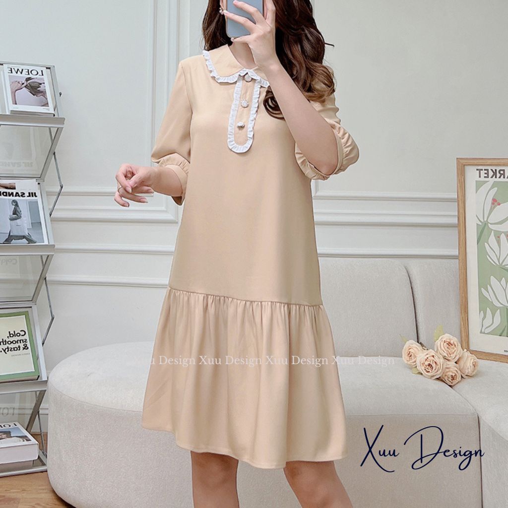 Giới thiệu Váy suông nữ dáng babydoll XUU hàng thiết kế cổ phối tay lỡ màu sắc nhẹ nhàng thanh lịch - V13