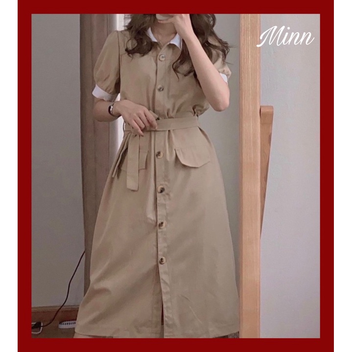 Giới thiệu Váy thiết kế be kaki kèm đai eo hàng cao cấp