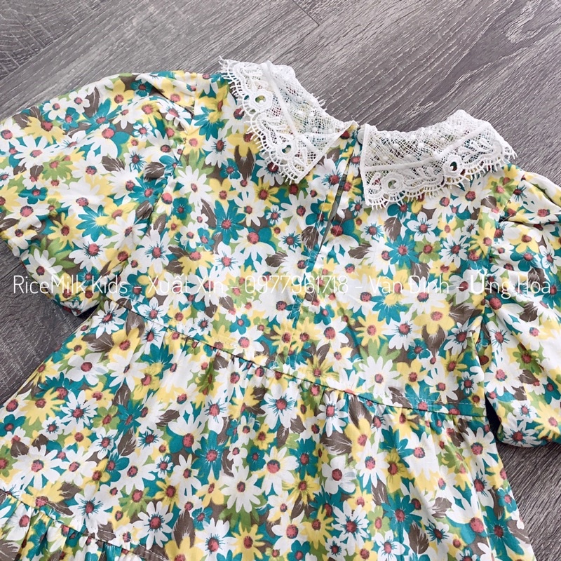 Thời Trang Trẻ Em > Trang phục bé gái > Váy/Đầm > Váy thô cổ ren màu xanh hoa nhí cho bé gái