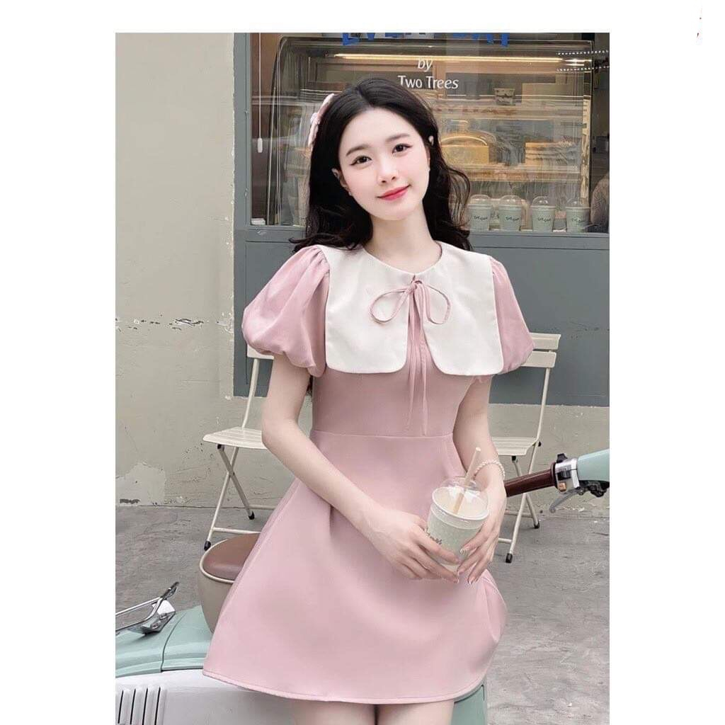 Váy thuỷ thủ tiểu thư Hàn Quốc Tone hồng paster cực sịnnnnn Diện ở nhà, đi chơi, tiệc tùng , du lịch cực sang chảnh Chất kaki 2 da, tay 2’lớp phồng ( ảnh thật trải sàn) 🍓 2size SM sz S 40-46 Sz M 47-52