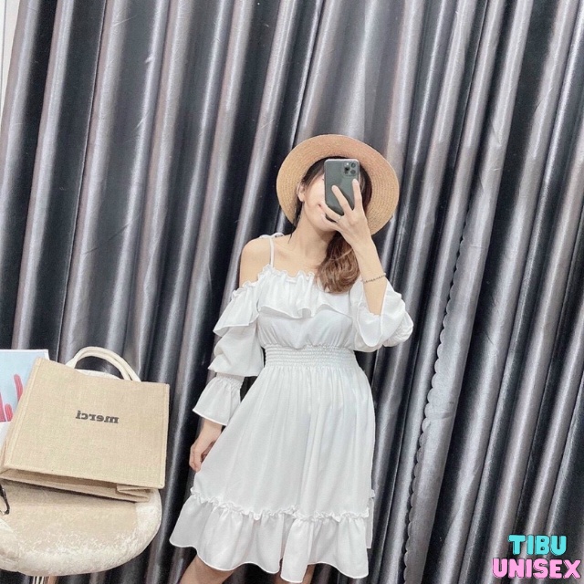 Giới thiệu Váy Tiểu Thư Trễ Vai TIBU, Đầm Bánh Bèo Màu Trắng Hai Dây Nữ Thích Hợp Đi Chơi Đi Tiệc Chụp Kỷ Yếu