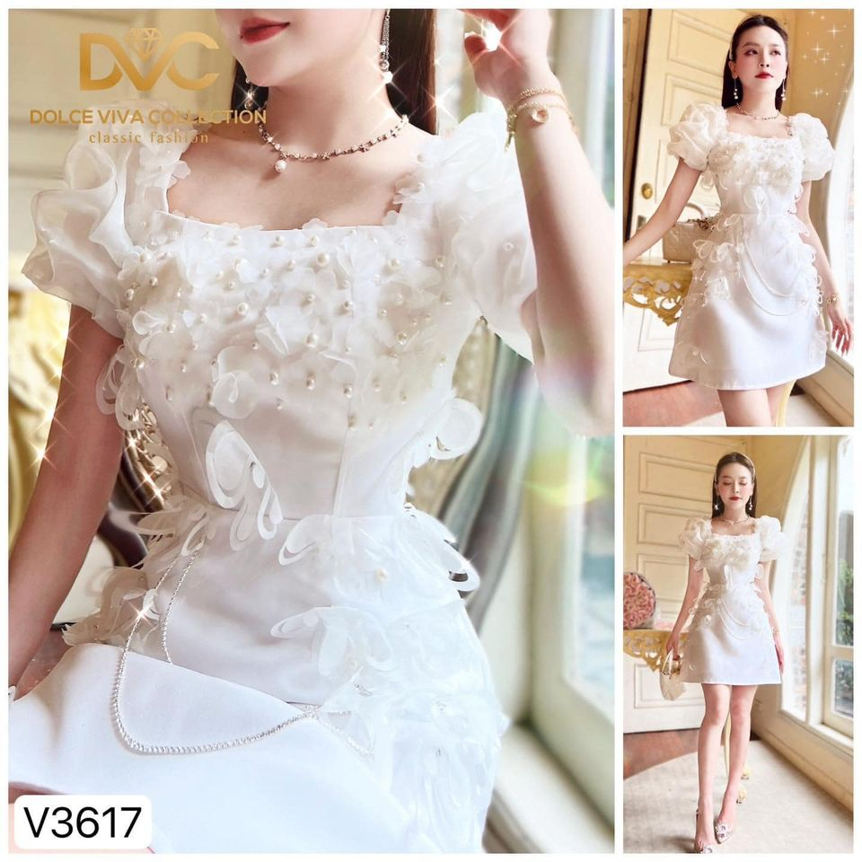 Giới thiệu VÁY TRẮNG CỔ VUÔNG ĐÍNH HOA NỔI V3617 - DVC