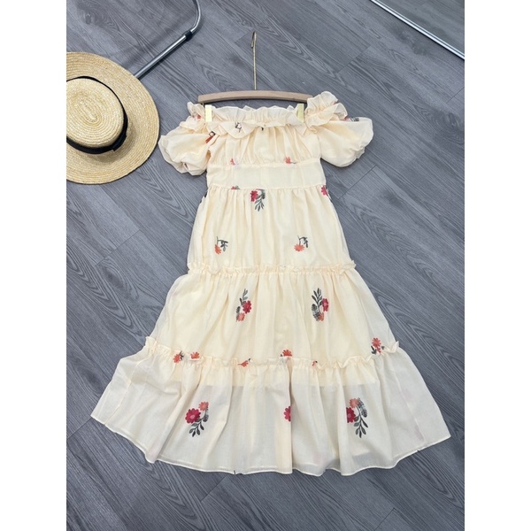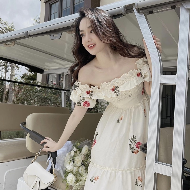 Giới thiệu Váy Trễ Vai Hoa Thêu Tay Bồng Chun Sau Có Ảnh Thật Kèm Video