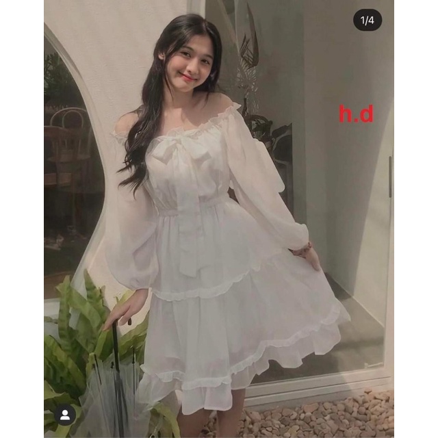 Giới thiệu Váy trễ vai nơ cổ tay voan siêu xinh HD12
