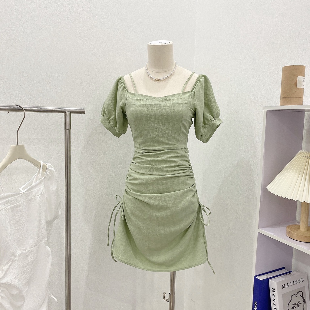 Giới thiệu Váy trễ vai rút dây điều chỉnh độ dài ,đầm vải xốp hạt đẹp -Minxy shop