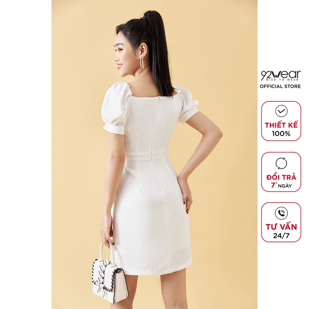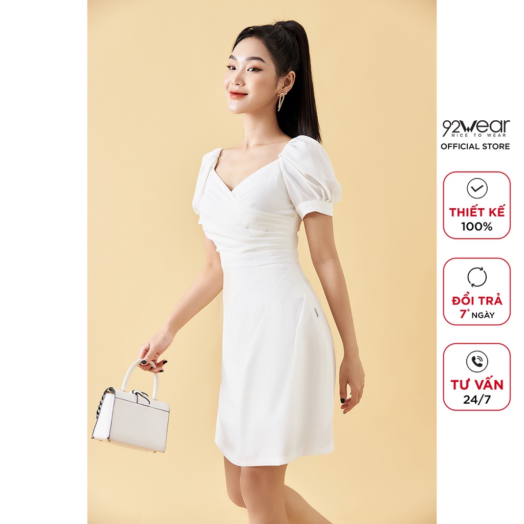 Váy xòe tay bồng 92WEAR, xếp ly thân trước thanh lịch, trẻ trung DEA1676