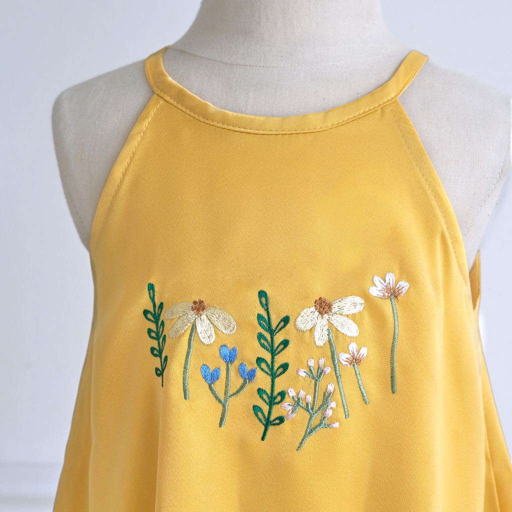 Giới thiệu Váy yếm Lụa Xuân Hạ Thu cho bé gái P'ti chou - Thiết kế truyền thống thuê hoa cho bé gái từ 1 đến 7 tuổi.