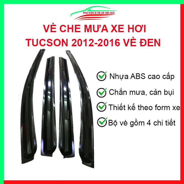 Vè che mưa cho xe ô tô Tucson 2013-2015 vè đen bảo vệ trang trí xe ✅✅✅CÔNG DỤNG: 👉 Giảm tiếng ồn của gió gây ra: Với thiết kế động học sẽ làm hạn chế tiếng ồn mà gió gây ra khi bạn chạy ngược chiều gió 👉 Giảm thiểu nhiệt độ đồ nội thất khi đậu xe ngoài trời nắng nóng: Khi đậu xe ngoài trời nắng nóng. bạn muốn mở hé cửa kính nhưng sợ nhiều người nhòm ngó vào xe nên việc trang bị vè che mưasẽ giúp ích cho việc này. Giúp bạn giảm nhiệt độ trong xe, lưu thông không khí trong xe mà không bị ảnh hưởng từ bê ngoài. 👉 Giữ cho cửa sổ bên sườn khô trong mưa, mát trong nắng: Khi trời mưa bạn có thể hé cửa sổ để thông thoáng không khí mà không bị nước hắt vào nội thất, khi trời nắng thì hạn chế ánh nắng chiếu vào nội thất gây ảnh hưởng.