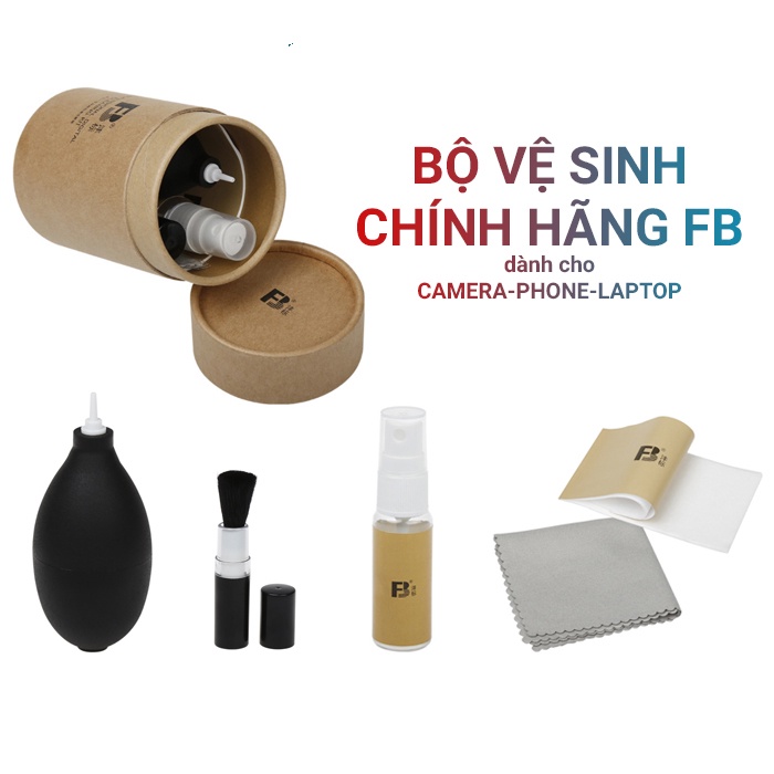 Bộ vệ sinh máy ảnh laptop điện thoại cao cấp FB Full bộ dụng cụ bao gồm 1. Hộp đựng 2. Bóng thổi 3. Dung dịch vệ sinh lens - vệ sinh màn hình, kính camera chuyên dụng 4. Khăn lau mềm 5. Bút chổi lau 6. Khăn thấm dầu vệ sinh sạch mặt kính lens combo đủ bước cho bộ vệ sinh máy ảnh các thiết bị công nghệ khác như Lens, máy tính, vệ sinh laptop