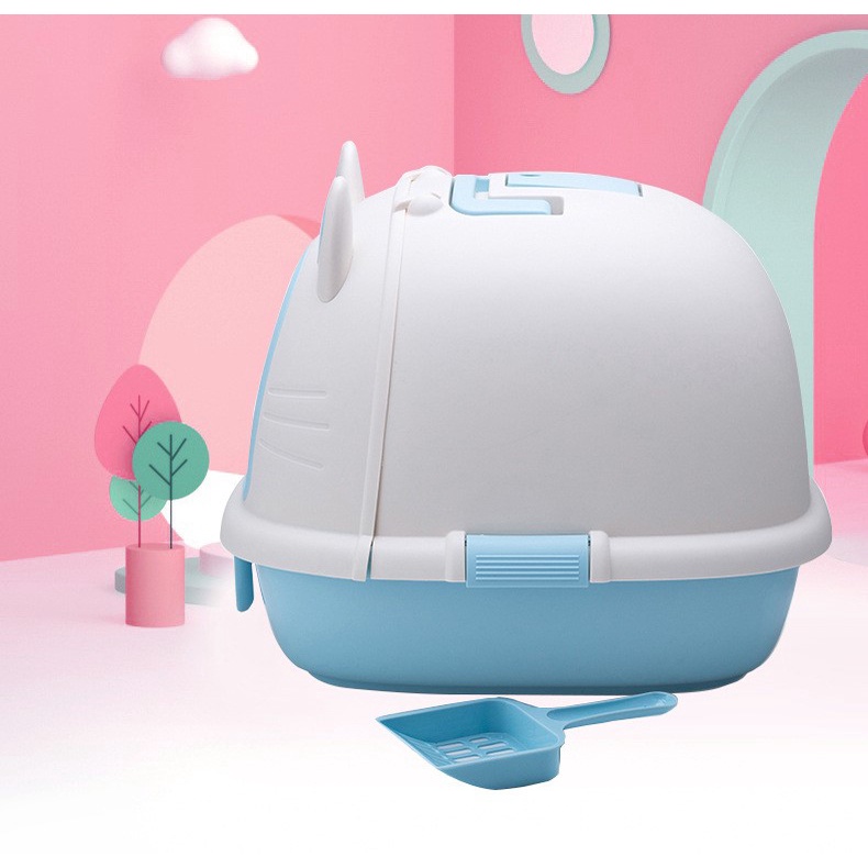 nhà vệ sinh tai thỏ cho mèo - nắp mở rộng để dọn cát dễ dàng - có ngăn để cát dư khi bé dặm chân bước ra ngoài - kích thước : 44x42x51cm