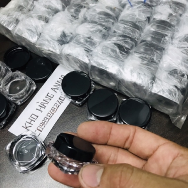 Nhà Cửa & Đời Sống > Sắp xếp nhà cửa > Hộp lưu trữ > Vỉ 100 hủ nhựa cứng nhỏ trong suốt nắp đen 3gr/ 5gr/ 10gr - Hủ Nhựa Vuông- combo 100 hủ kiếng nắp đen nhỏ- hủ mỹ phẩm