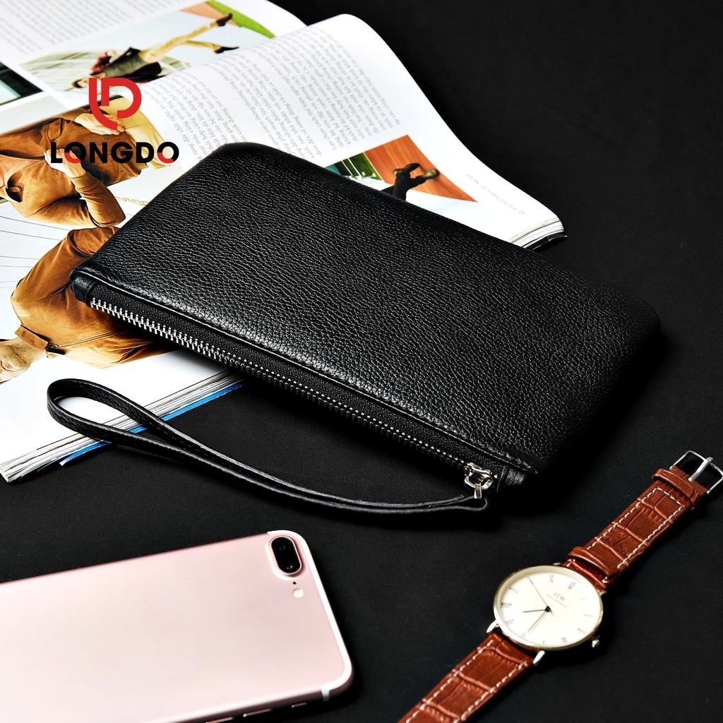 Giới thiệu Ví Cầm Tay Nữ Cao Cấp - Cam Kết Da Bò Thật 100% - Màu Đen Hàng Chính Hãng Thương Hiệu Longdo Leather - BNM01