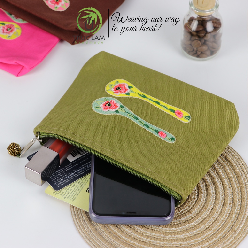 Giới thiệu Ví Cầm Tay Nữ Vải Canvas Thêu Tay Họa Tiết Hai Chiếc Thìa Hoa - Trúc Lâm Handmade