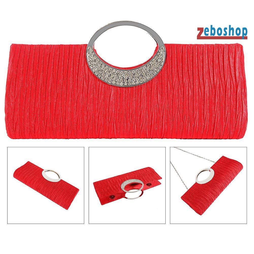 Giới thiệu Ví Cầm Tay Xếp Li Chất Liệu Satin Đính Đá Sang Trọng Thời Trang Dự Tiệc Cho Nữ