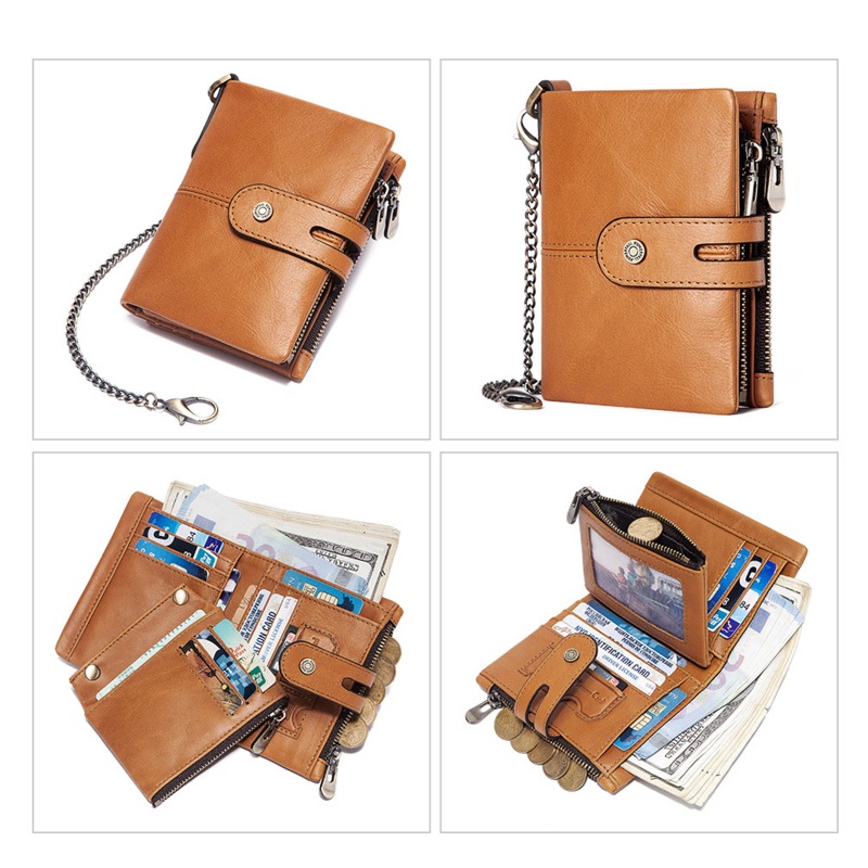 Giới thiệu Ví Da Mềm Gấp Đôi Có Khóa Kéo Và Dây Xích Dành Cho Nam