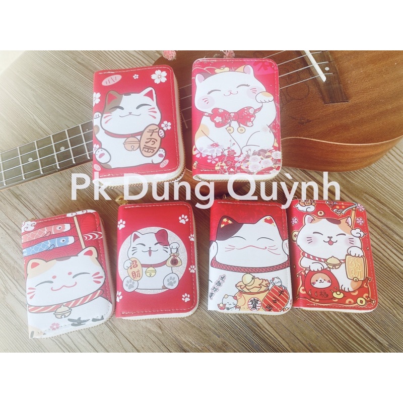 Giới thiệu Ví da mini nhiều ngăn kéo khoá hoạ tiết mèo thần tài