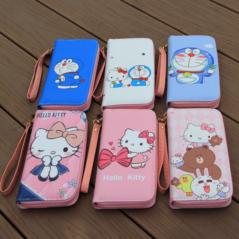 Giới thiệu Ví Da PU Dài Cầm Tay Có Khóa Kéo In Hoạt Hình Doraemon / Gấu Hello Kitty Cho Bé