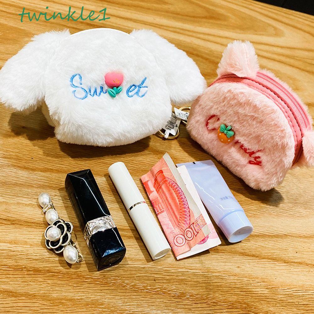 Giới thiệu Ví Đựng Thẻ ID / Tiền Xu Phủ Lông Nhung Họa Tiết Dâu Tây / Nơ Hoạt Hình Dễ Thương Cho Nữ Giá Đỡ
