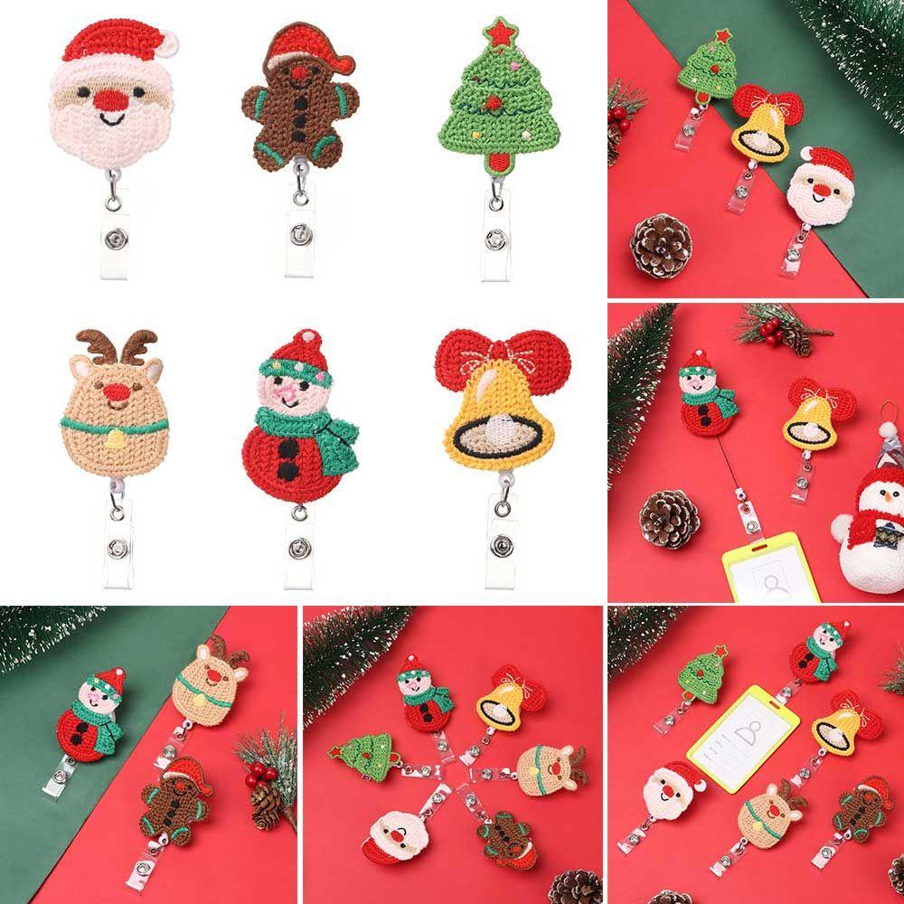 Giáng sinh Hình dạng dễ thương Kéo giãn đan bằng tay Dễ dàng kéo Nút xoay Người giữ huy hiệu Chủ thẻ ID cho y tá Sinh viên Bác sĩ