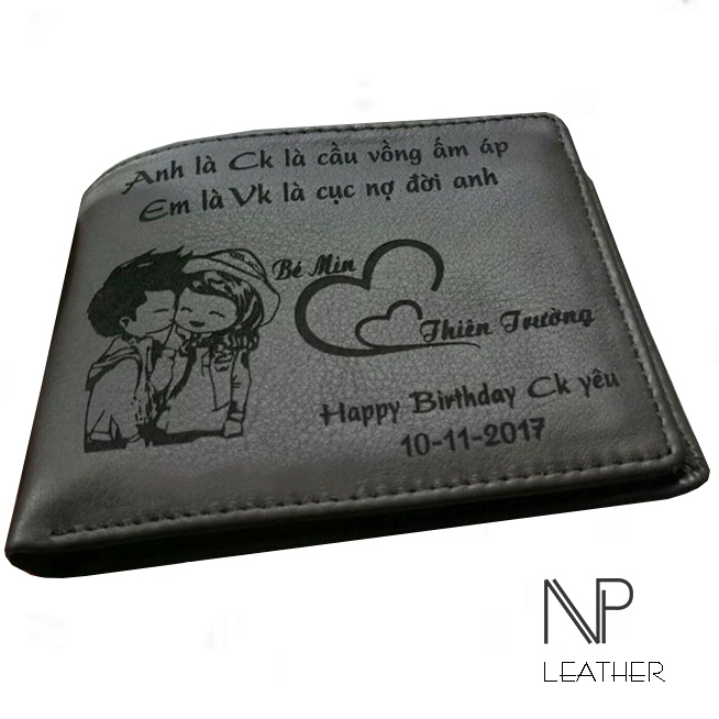 Ví Nam Khắc Tên Theo Yêu Cầu - Ví Nam Da Bò Thật NP Leather Quà Sinh Nhật Cho Nam, Quà Tặng Cho Nam