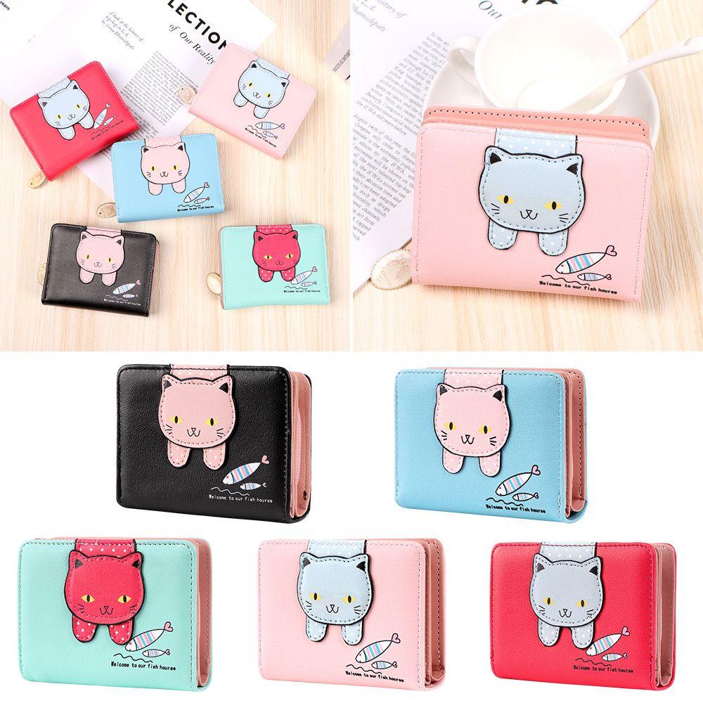 Giới thiệu Ví Ngắn Bằng Da PU In Họa Tiết Mèo / Cá Đáng Yêu Thời Trang Cho Nữ
