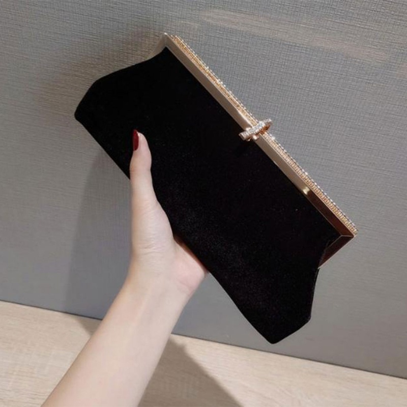 Giới thiệu Ví Nhung Đen Cầm Tay Đính Đá Phong Cách Retro Cho Nữ