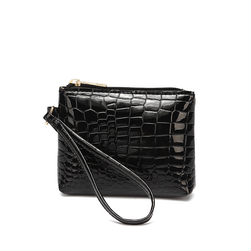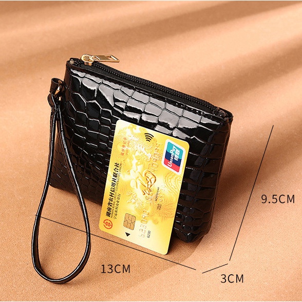 Ví nữ ngắn cầm tay da trơn vân cá sấu thời trang khóa kéo tiện dụng