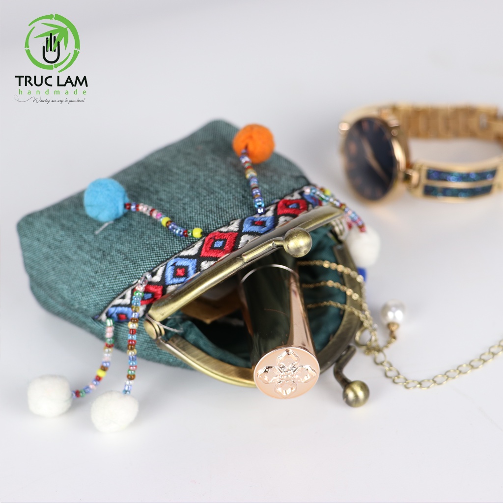 Giới thiệu Ví Xu Mini Ví Cầm Tay Khóa Nẹp Đồng Gắn Quả Bông Vải Dệt Thô Phương La Thái Bình - Trúc Lâm Handmade