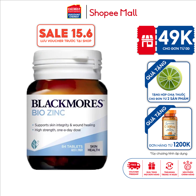 Sức Khỏe > Thực phẩm chức năng > Hỗ trợ sức khỏe > Bổ sung kẽm Bio Zinc Blackmores giúp giảm mụn trứng cá, tăng cường sinh lý và chất lượng tinh trùng Úc 84 viên
