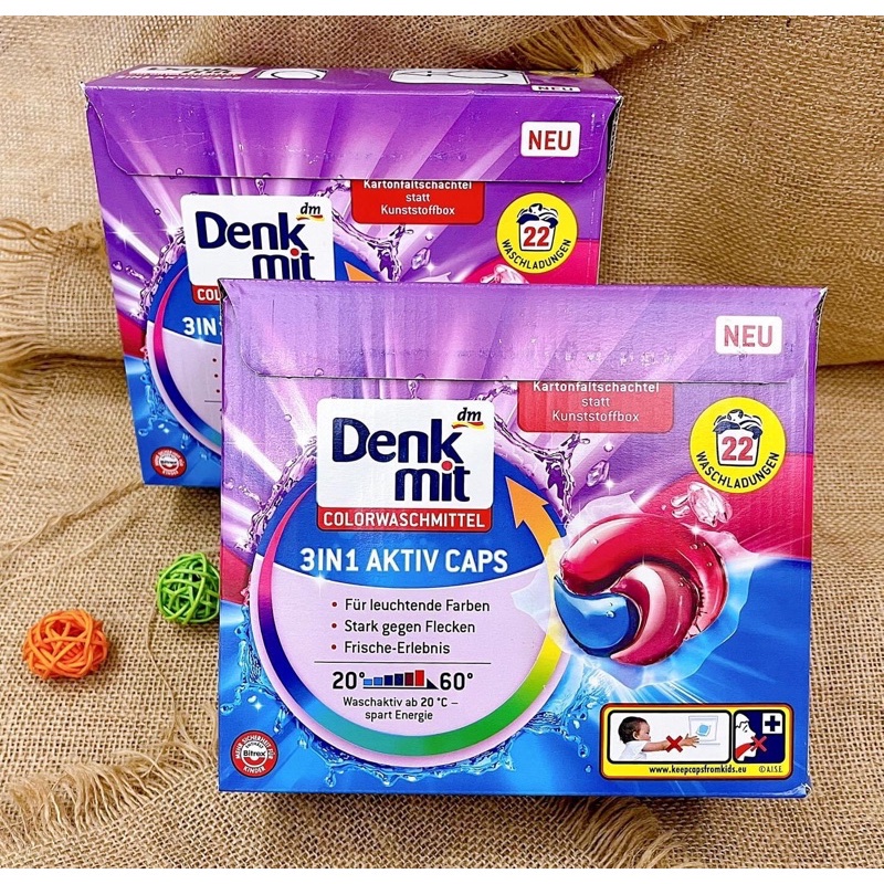 Viên Giặt Quần Áo Màu Tổng Hợp 3in1 Denkmit Colorwaschmittel Aktiv Caps Hộp 22 Gói