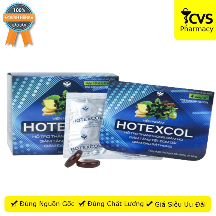 Giới thiệu Viên Ngậm Hotexcol - Hộp 40 viên - Hỗ Trợ Thanh Họng - Cvspharmacy