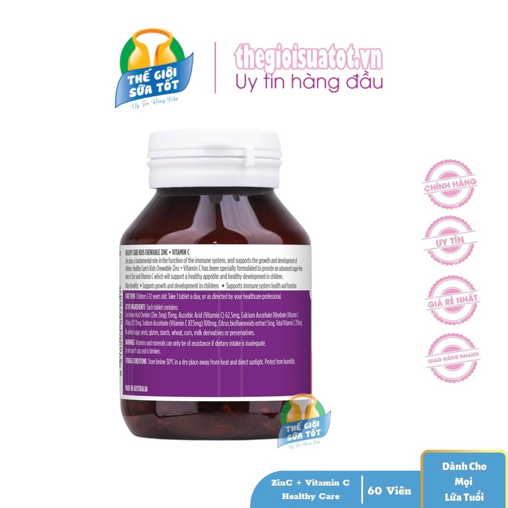 Viên Nhai Bổ Sung Kẽm ZinC + Vitamin C Healthy Care- Hộp 60 Viên Cho Bé thegioisuatot Sản phẩm không phải là thuốc, không có tác dụng thay thế thuốc chữa bệnh