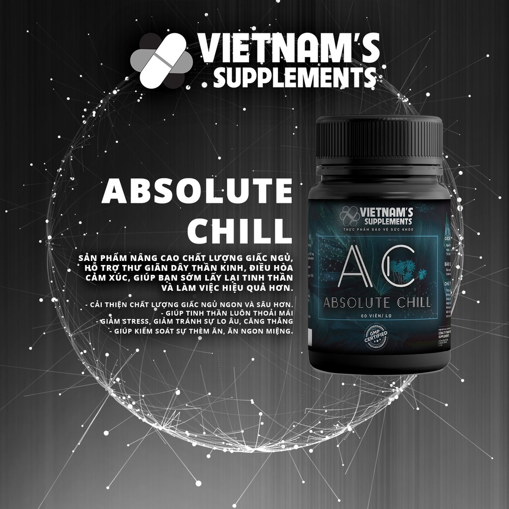 THÔNG TIN VIÊN UỐNG BỔ SUNG 5-HTP CẢI THIỆN GIẤC NGỦ ABSOLUTE CHILL: - Thương hiệu: Vietnams Supplements - Quy cách đóng gói: 60 viên/lọ - Hạn sử dụng: 2 năm kể từ ngày sản xuất - Xuất xứ: Việt Nam