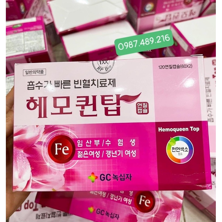 Giới thiệu Viên Uống Bổ Sung Sắt HEMOQUEEN TOP Hàn Quốc 120V, trumsihanghanquoc