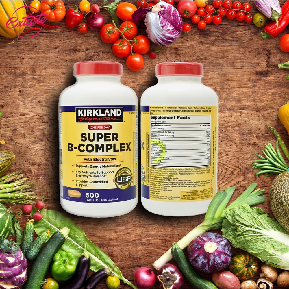 Giới thiệu Viên uống bổ sung vitamin B Kirkland Super B-complex tăng hệ miễn dịch 500 viên extaste