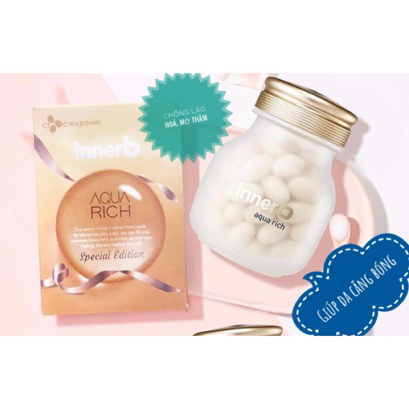 Giới thiệu Viên uống cấp nước Aqua rich bổ sung Collagen giúp da sáng, căng bóng CJ Innerb Aqua Rich