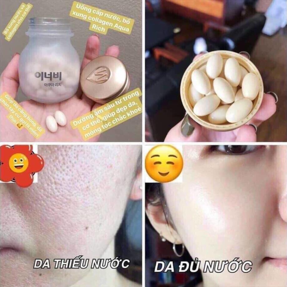 Công dụng của viên uống cấp nước Innerb Aqua Rich mẫu mới 70 viên : – Viên uống cấp nước Innerb Aqua Rich giúp da căng bóng; tăng độ đàn hồi; làm sáng da và cấp nước dồi dào; tái tạo da; giảm nhăn. – Viên uống cấp nước Innerb Aqua Rich cấp nước tối đa với thành phần chứa hơn 90% là Hyaluronic Acid – giữ cho da luôn ngậm nước; không còn hiện tượng bong tróc. – Đặc biệt HA trong viên uống Innerb Aqua Rich là dạng sodium Hyaluronate được tách ra từ HA với kích thích nhỏ hơn, giúp hấp thụ tốt và tác động rõ rệt lên da so với những loại thông thường. – Viên uống cấp nước Innerb Aqua Rich cân bằng độ Ph cho da; kiềm dầu vùng chữ T và giúp cho lớp nền khi makeup mịn màng hơn. – Viên uống cấp nước Innerb Aqua Rich giúp da căng mịn và hồng hào hơn. – Viên uống cấp nước Innerb Aqua Rich chống lại nếp nhăn, lão hóa và duy trì đàn hồi của cơ mặt. – Viên uống cấp nước Innerb Aqua Rich dùng cho tất cả mọi loại da, kể cả da dầu bởi hơn hết da dầu cần cấp nước nhất nhé.
