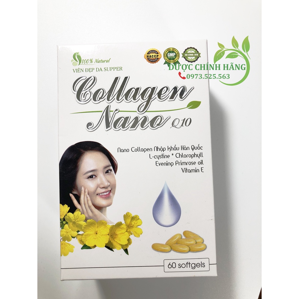 Viên uống Collagen Nano Q10 giúp đẹp da, căng da, ngừa lão hóa, sạm, nám .SỶ SỐ LƯỢNG GIÁ TỐT IB 0973 525 563 HOẶC IB TRẢ GIÁ - Thông số kỹ thuật của sản phẩm - Quy cách: Hộp 60 viên nang mềm 1.THÀNH PHẦN : Viên uống Collagen Nano Q10 - Nano collagen (NK Hàn Quốc ) : 500mg - Dầu hoa anh thảo : 100 mg - Vitamin E : 40IU - 40mg cao chiết xuất tương đương : Diệp lục 200 mg, Cần tây : 200 mg, Tảo xoắn : 30 mg, L cystine 10 mg, Glutathion 500 mcg Royal jelly ( sữa ong chúa ) : 500 mcg Vitamin C 200 mcg Coenzyme Q10 200 mcg Biotin 5 mcg Vitamin A : 50UI - Công dụng và lợi ích của sản phẩm 2. CÔNG DỤNG Viên uống Collagen Nano Q10 - Làm đẹp da, ngừa lão hóa: bổ sung nguồn cung Collagen đang thiếu hụt. - Phục hồi độ săn chắc cho làn da, ngăn ngừa chảy xệ - Tăng cường sự liên kết tế bào mô dưới da, từ đó làm căng da, làm mờ nếp nhăn, nếp gấp hiệu quả. - Giúp trẻ hóa da, xóa mờ dấu hiệu tuổi tác. - Bên cạnh đó, collagen còn giúp da mịn màng, cải thiện làn da sần sùi thô ráp. - Làm lành vết thương, giảm sự hình thành của sẹo. - Giúp tăng cường hệ miễn dịch .Ngoài ra collagen thủy phân còn là nguồn cung cấp dưỡng chất tự nhiên, giàu có của glycine, loại axit amin thiết yếu cho tăng trưởng cơ bắp của cơ thể, xây dựng cấu trúc xương vững chắc. Nuôi dưỡng móng chắc khỏe, giảm đứt gãy. Collagen viên làm dầy tóc và cải thiện tình trạng rụng tóc, hói đầu.